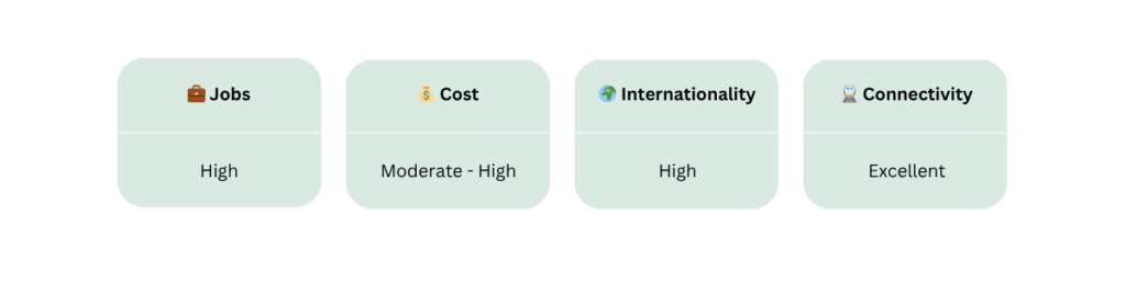 Verdict: The ultimate destination for finance professionals, bankers, and consultants. If your priority is a global career in a high-octane environment, Frankfurt is your spot.