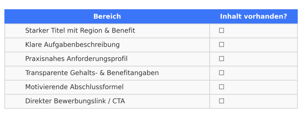 Diese einfache Struktur sorgt dafür, dass Sie alle wichtigen Punkte abdecken – und Ihre Anzeige professionell, attraktiv und messbar erfolgreich ist.