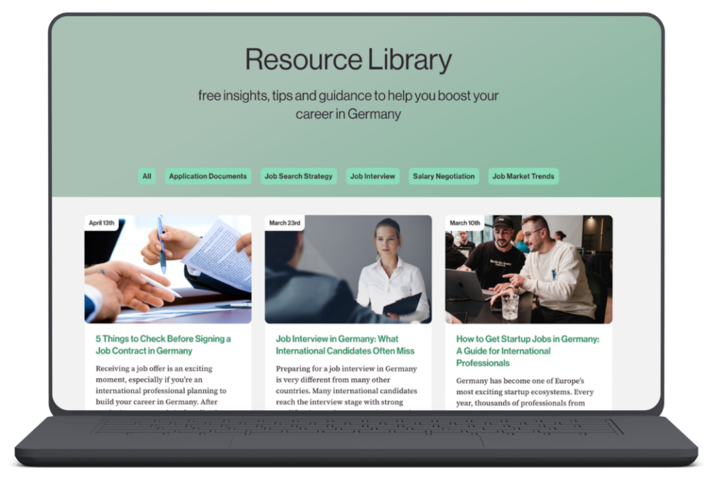 Start with our guides, templates, and resources to understand the German job market and improve your applications. All in one place.