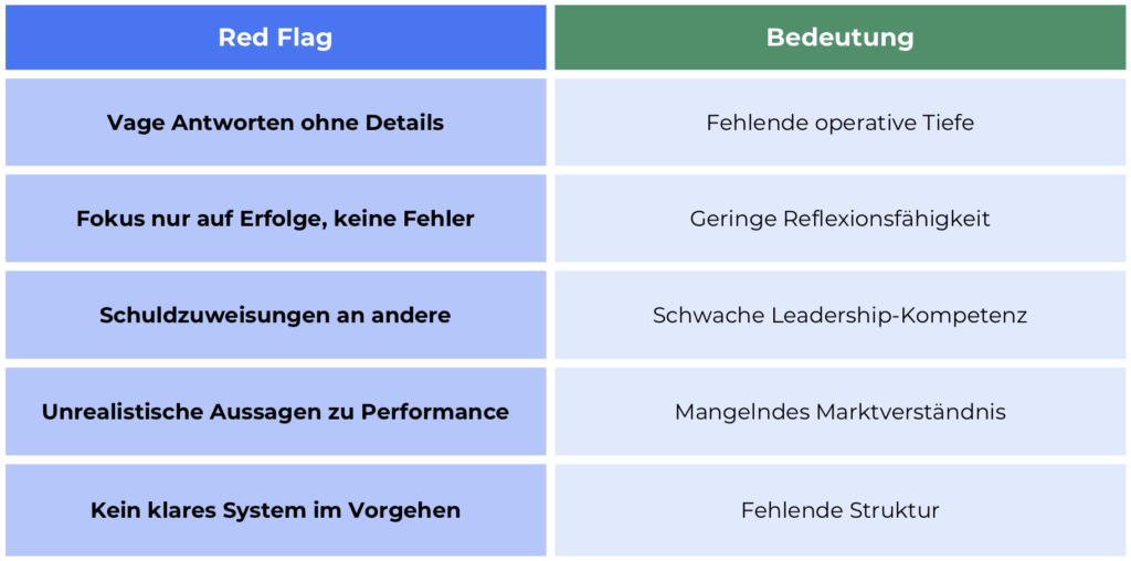 Neben positiven Signalen gibt es auch klare Warnzeichen, die Hiring Manager ernst nehmen sollten.